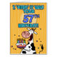 "I 'herd' it was your 57th birthday!" fun b-day cow holding a birthday cake greeting card.