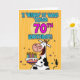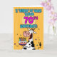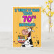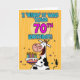 "I 'herd' it was your 70th birthday!" fun b-day cow holding a birthday cake greeting card.