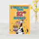 "I 'herd' it was your 92nd birthday!" fun b-day cow holding a birthday cake greeting card.