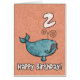 Happy birthday whale - 2 years old Cute humpback whale on an age specific birthday greeting card. Inside text: "Hope you have a whale of a time!"