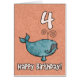 Happy birthday whale - 4 years old Cute humpback whale on an age specific birthday greeting card. Inside text: "Hope you have a whale of a time!"
