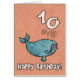 Happy birthday whale - 10 years old Cute humpback whale on an age specific birthday greeting card. Inside text: "Hope you have a whale of a time!"