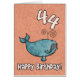 Happy birthday whale - 44 years old Cute humpback whale on an age specific birthday greeting card. Inside text: "Hope you have a whale of a time!"
