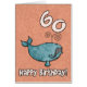 Happy birthday whale - 60 years old Cute humpback whale on an age specific birthday greeting card. Inside text: "Hope you have a whale of a time!"