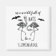 Illustration of two black skeleton flamingos with bats. Text says, "In a world full of bats be a flaminghoul"