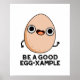 Be A Good Egg-xample Funny Egg Pun features a cute egg reminding you to always be a good example. Perfect pun gift for family and friends who love cute egg puns.