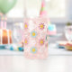 Fun pink, blue, and white daisy flowers adorn this drink ware, reminding you to "Be a Kind Human." Perfect for spring and Easter celebrations!