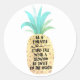 Bright and fun pineapple sticker. This custom cute sticker features a white background with a pineapple and the quote "Be A Pineapple - Stand Tall, Wear A Crown & Be Sweet On The Inside" on it.