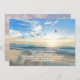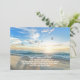 Be at peace, encouraging and comforting scripture on the front of this greeting card with a beautiful beach scene. Birds fly across a sunrise over a beautiful seashore. The verse is printed along the bottom and is from the book of John, "Peace I leave with you; my peace I give you. I do not give to you as the world gives. Do not let your hearts be troubled and do not be afraid.” On the back, add a message and signature as you prefer. This card is also offered as a digital download.