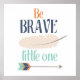 Be Brave Little One Poster. Navy Blue, Orange, Teal and Tan Tribal Nursery Art.