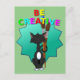 "Be Creative Graphic Design Featuring a Black and White Cat with Curled Tail Around Artist Paint Brushes – Ideal Gift for Artists and Creatives"