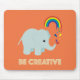 An adorable mousepad of a baby elephant being creative painting a rainbow. This mousepad is designed with love by Aubergine and Purple.