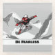 An avid snowboarder is fearless as he skies down the snow packed mountains at full speed.