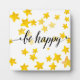 Handwritten calligraphy text be happy at yellow watercolor stars background. Vector greeting card design. | Bigstock® - All Rights Reserved.
