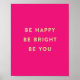 BE HAPPY BE BRIGHT BE YOU hot pink art print