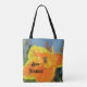 Be Happy Bee Pun Bright Orange Flower Photo Floral Tote Bag