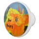 Add a burst of colour and positivity to your room with this drawer pull or cabinet knob featuring a bright orange and yellow canna lily. This flower is being visited by a large bee that is surrounded by the spotted pattern of this large bloom. The muted blue water and green foliage allow the flower to take centre stage. "Bee Happy" can easily be customised to suit your needs.