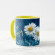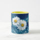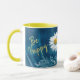 Be Happy und der Name mit zwei Gänseblümchen und blauem Hintergrund