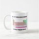 Wry and sly Periodic Table of Elements humour is alive and well on this double-entendre saying mug featuring the following advice: "Be In Your Own Element Think Periodically". Make others do a double-take and wonder what you mean with this scientific, educational geek humour mug today!