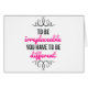 Get this bright pink typographic "to be irreplaceable you have to be different" quote on a huge range of products.