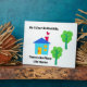 Little blue house with trees in yard and quote: "Be it ever so humble, there's no place like home." Adorable gift for the new home owner, family, or friend.