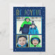 Spread cheerful winter vibes with this holiday card featuring the bold message “Be Joyful” above a modern three-photo collage. Playful, colourful typography pops against a deep navy snowfall background for a fun, kid-friendly look. Personalise with your favourite photos and family line for a bright, happy greeting. The back features a coordinating bright blue snow-dot pattern for a clean, festive finish.