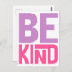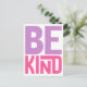 A modern typography design of the inspirational words Be Kind in bold purple and pink lettering.