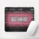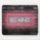 BE KIND pink neon sign glowing on black brick wall with rustic texture