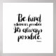 Our Be Kind poster quotes the Dalai Lama who says "Be kind whenever possible. It's always possible." The poster measures 24" x 24", however, the actual wording measures about 12" x 12" as there is a generous 6" of white space surrounding the piece.