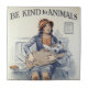 Vintage illustration of a young woman sitting on a bench, holding a dog wrapped in a blanket with the title "Be Kind to Animals" The illustration is by Morgan Dennis and was distributed by the State Humane Office of Madison Wisconsin