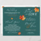 This classy & rustic "BeLeaf in Love" folded 8.5x11" 4-page wedding ceremony program, in jewel tone teal & rust / terracotta, is part of the fall leaves Autumn wedding invitation suite and features deep teal front & back cover with all the details you need on the white inside pages! Program is adorned with colourful watercolor fall maple leaves throughout the design with elegant script typography headline details. Pages include welcome cover, order of service, wedding party, in memory, and personal thank you message! Easily personalise the wording for your wedding ceremony, and you may even add / delete text, change the burnt orange background colour, edit placement of design components, or even add your website QR code - once your add your details. To do so, click the blue "Edit using design tool" button at the bottom of the "Personalise" window, navigate to the "layers" tab in the left hand column of the screen, select the front or back side layer, then click on the layer element you would like to change and make it your own! ** Check out the entire matching suite including 2 save the date options, formal wedding invitation, details / wedding day timeline infographic mid-size enclosure card, formal rsvp card, darling belly band enclosure, return addressed envelope, and more coordinating designs in the teal & rust colour "Be Leaf In Love" collection (burnt orange collection in this design is also available!) - scroll down to see the collection below, or head to my Zazzle storefront and view the collection in it's entirety there ♥ Custom designs / product requests and template questions are always welcome! Click the "message" button or email directly (with quick response time!): contact@figandlilyco.com. Design is lovingly created by Fig and Lily Studios - sending blessings and thanks!