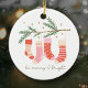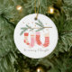Add a festive and cheerful touch to your holiday home tree decor with this adorable seasonal Christmas ornament. Ornament has red and pink stockings hanging on a pine tree branch with the text be merry and bright. Add your custom text on the back, such as your family name and the year.