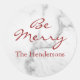 This elegant sticker is accented with, Be Merry, written in bright red script and the family's name on a marble coloured background. This sticker can be used as a gift label or envelope seal, and additional coordinating items can be found in the Be Merry Marble Holiday Collection.