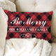 Be Merry Modern Red Buffalo Plaid Family Monogram Lumbar Cushion