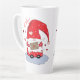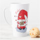 A cute latte mug with a sweet red gnome carrying a letter filled with love . Above him , it says. "Be Mine" .