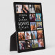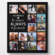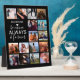 Personalised memories picture plaque featuring a black background that can be changed to any colour, 16 photos of your choice, your name, a white heart symbol, and the sweet text that reads "be mine, always & forever".