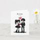 A darkly cute Valentine’s card for lovers of all things gothic. This design features an adorable goth couple dressed in black, holding a heart balloon and blood-red roses, paired with the playful yet dramatic phrase “Be mine. Or else.”