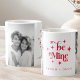 Coffee mug featuring the text "be mine" in red surrounded by retro stars and the couple's names below. On the sides are two photo templates.