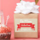 This fun Valentine's Day sticker design features a red banner and the text 'Be Mine Valentine' '14 February'. Beige background is optional and can be changed to any colour.