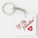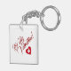 Let this red and white Valentine keychain hold the key to your special someone. This sweet design has a white background with a red script text that reads, 'Be My Valentine!', along with the heart and butterfly art. This design is on the front and back of the keychain.