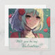 Colourful manga Valentine's card with a lovely girl holding a red heart and framed by sweet details. The front shows an enchanting "Will you be my Valentine?" in playful letters. A heartfelt gesture full of love and charm.