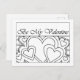 This beautiful black and white line drawing is ready to be coloured in, for a unique DIY way to say "I Love You". This card features the phrase "Be My Valentine" and an accompanying assortment of heart designs.
