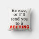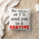 Be Nice or I'll send you to a meeting, snappy, funny office humour saying for assistants and co-workers.