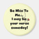 Nurse text T-shirts, mugs, cards, stickers, buttons, bags, and other nursing apparel and gifts with a stethoscope and text that reads "Be nice to me...I might be your nurse someday!".
