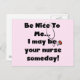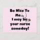 Nurse text T-shirts, mugs, cards, stickers, buttons, bags, and other nursing apparel and gifts with a stethoscope and text that reads "Be nice to me...I might be your nurse someday!".