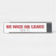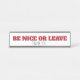 Be funny and firm with this "Be Nice or Leave" sign that is perfect for reception desks, teachers' desks, retail spaces, eating places and more.
