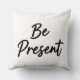 Elevate your living space with this beautiful minimalist throw pillow cover. Featuring the mindful quote "Be Present" in a clean, elegant script font, this pillow is perfect for adding a sense of calm and intention to your sofa, bed, or reading nook. An ideal housewarming gift or a lovely way to refresh your home decor aesthetic. This custom mindfulness pillow is made from soft, high-quality Cotton Canvas fabric and is available in various colors on Zazzle. Shop this modern Zen decor today!