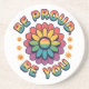 Be Proud Be You – Retro Rainbow Flower Pride Quote Coaster