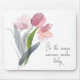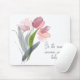 Beautiful and elegant, feminine and girly blush pink watercolor flowers/tulips and sage green leaves on white mousepad. Includes the Inspirational quote, "Be the reason someone smiles today."