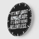 Purchased this online and it got delivered quickly. It was a present for my Dads 70th birthday. He loves clocks so decided to get him one with something written on it. Battery went in and it started working straight away. Dads had no issues with it. Printing was just how it came up online.